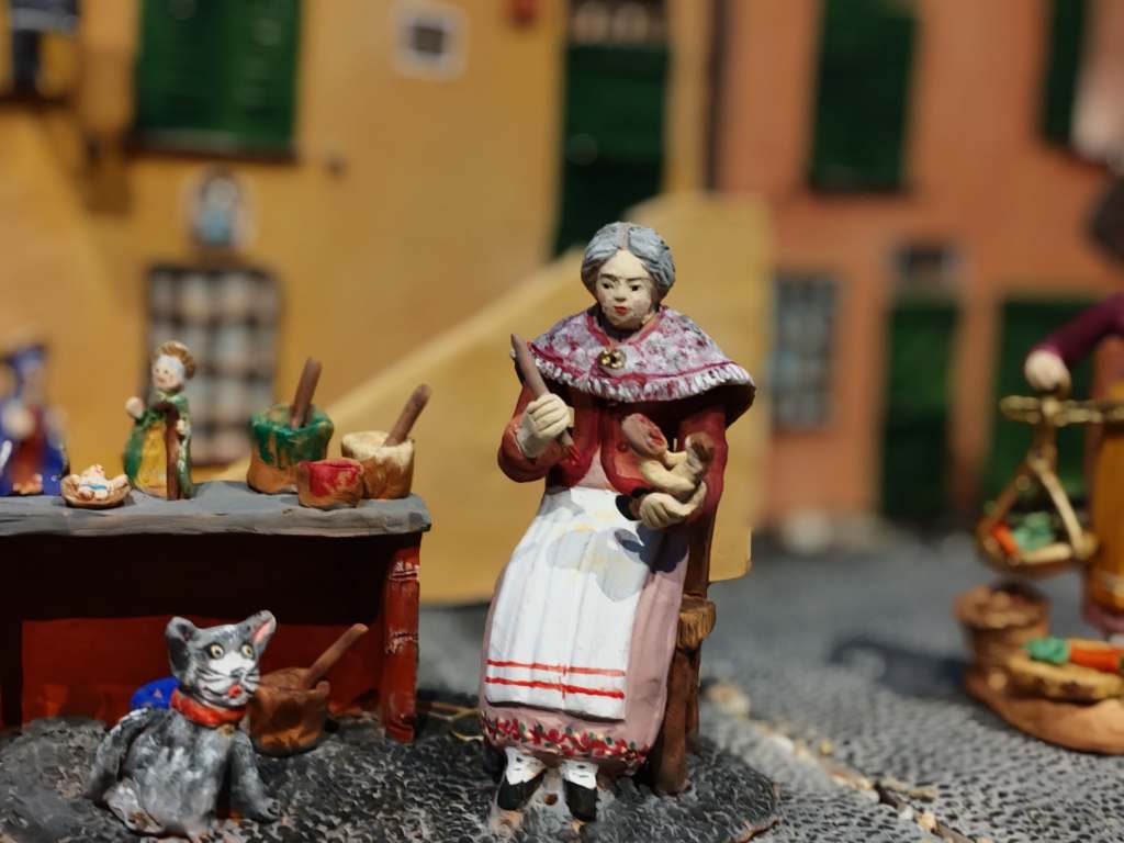Il presepe tradizionale ligure è una finestra sulla cultura popolare di un territorio ricco di storia e tradizioni. Tra i personaggi iconici che animano questa scena natalizia spiccano figure come La Natività con l’asino e il bue, l’angelo annunciante, e personaggi locali che aggiungono un tocco di autenticità: Gelindo e Gelinda, Maffeo il suonatore di piffero, e u “Zeun”, l’uomo perennemente infreddolito, accompagnato dalla sua premurosa moglie.