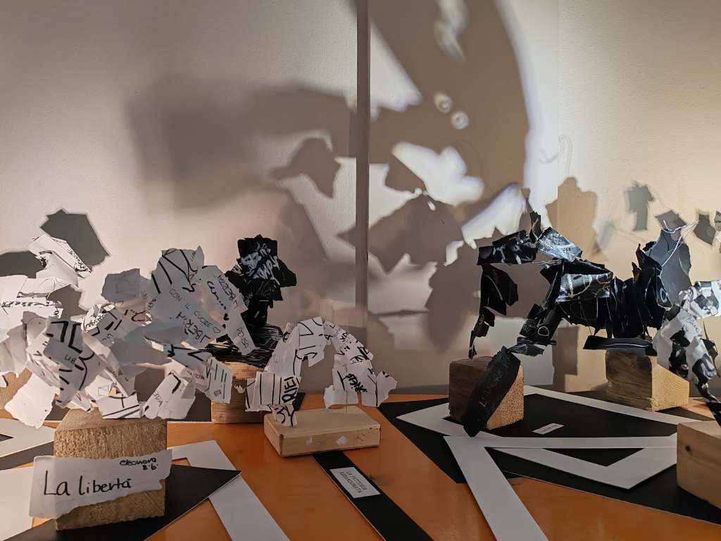 L’installazione artistica nasce dalla riflessione su temi fondamentali come l’odio, la speranza e il valore della memoria, con l’obiettivo di trasmettere un messaggio di pace e uguaglianza. Gli studenti hanno trasformato i propri pensieri in opere artistiche utilizzando materiali semplici, ma dal forte impatto emotivo. Ogni creazione rappresenta un frammento del loro mondo interiore e contribuisce alla costruzione di una memoria collettiva.